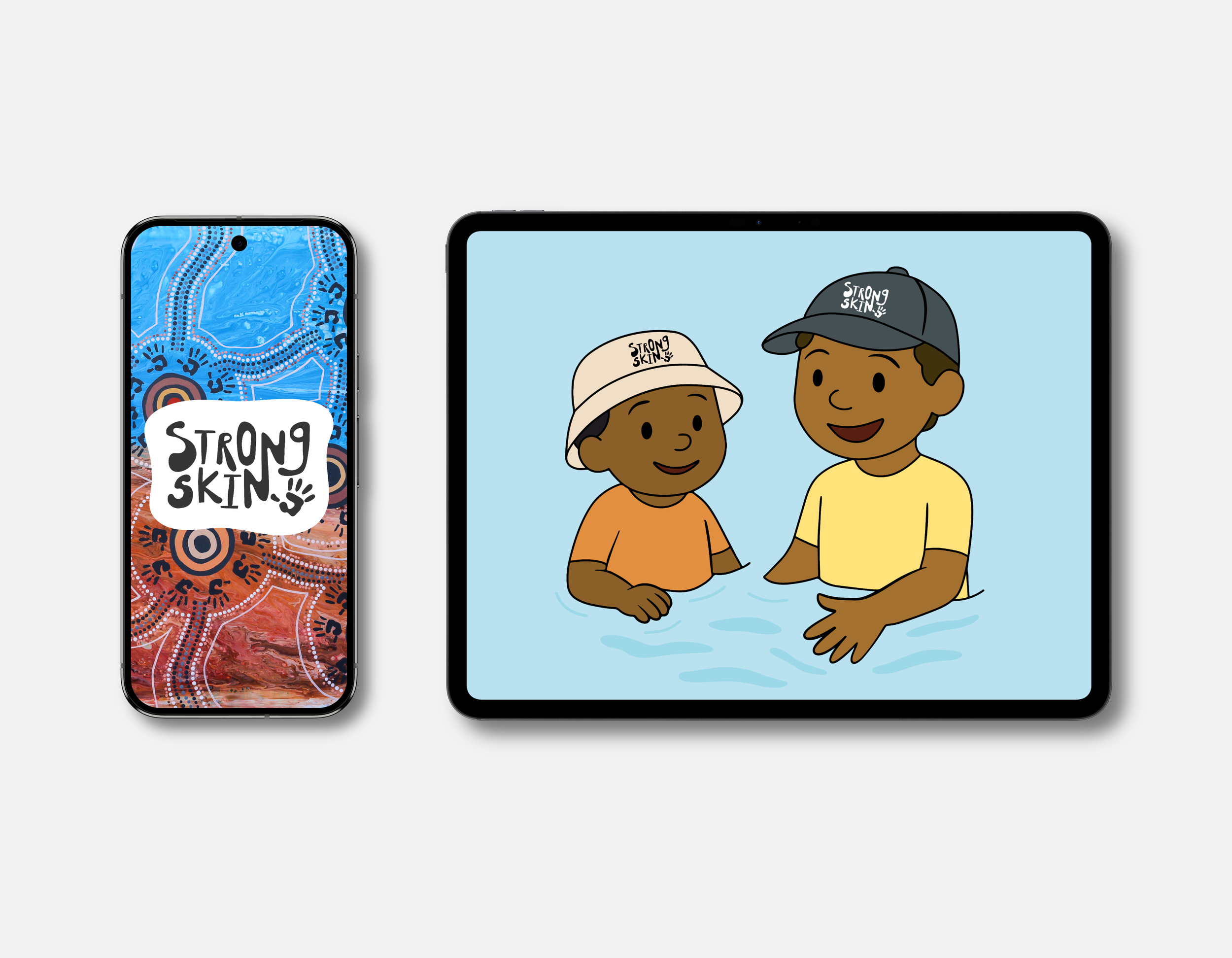 Logo Design and Illustration for the Strong Skin App for The Kids Research Institute Australia — a mobile resource supporting Aboriginal families to recognise and manage skin infections and keep children’s skin healthy.