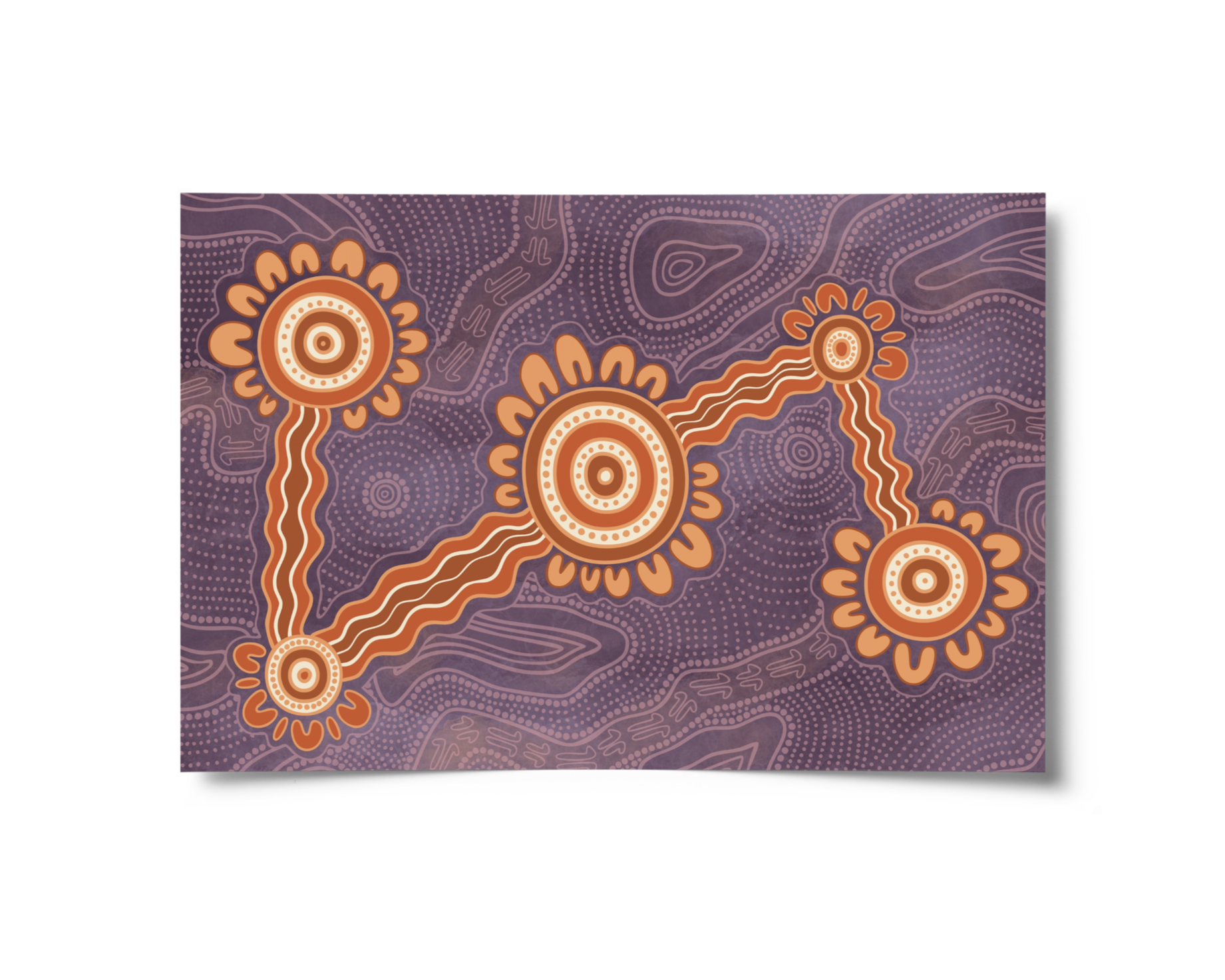 This artwork is a tribute to the SNAP Trial taking place throughout Australia, focusing on improving health outcomes for Aboriginal and Torres Strait Islander individuals, families, and communities with Staphylococcus aureus bacteremia. It also welcomes all First Nations participants in the SNAP Trial across the globe into a unified story of hope and healing through research.